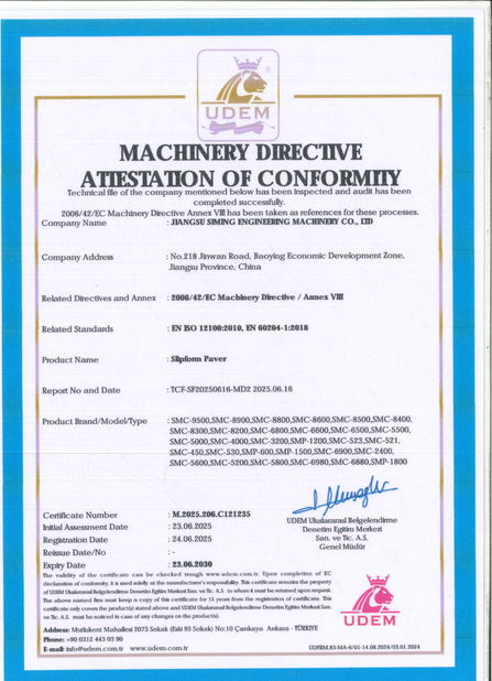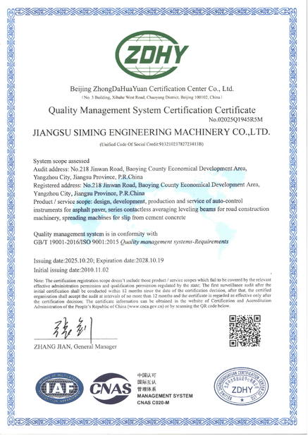 CINA Jiangsu Siming Engineering Machinery Co., Ltd. sertifikasi
